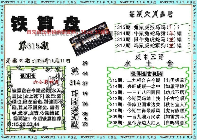 | 316期精解铁算盘玄机:资料更新中 玄机解释:资料更新中 综合取肖:资料更新中 主取号码:$$.$$.$$.$$.$$.$$.$$.$$ |